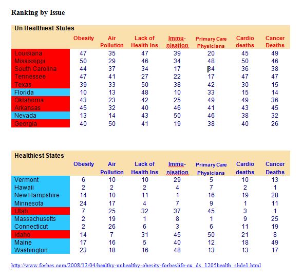But the United States would be even lower down the International tables in healthcare and virtually every other metric, if one excluded the Blue States regarding the adequacy of healthcare and other lifestyle issues: