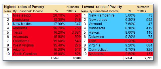 *Red Font Numbers are guesstimates. I chose 30 for Kansas because they seem to have a pattern of coming in around 30. The interesting point about Kansas is to consider not where they have been, but where they are going. On the racism question – which can be hard to get data on – I was probably overly cautious (harsh) in giving Vermont 30 – but I did this because they have had some recent bad press in regards to some police actions against minorities and likewise I was probably being kind to Kansas—but since I could find no data I gave them a 15.