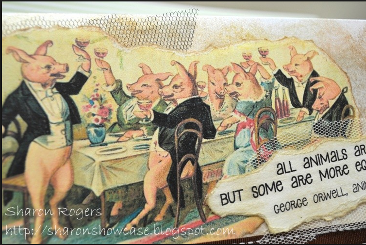 “voices were shouting in anger, and they were all alike. No question, now, what had happened to the faces of the pigs. The creatures outside looked from pig to man, and from man to pig, and from pig to man again; but already it was impossible to say which was which.” George Orwell –Animal Farm.