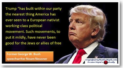 Now most Americans are not anti Mexican, Chinaman, Muslim, etc, but most Stupidparty voters are—and this disease of the mind might well make further inroads, since big money will not want turn on the very people they have deceived into voting against their own economic interests. After the first World War, Germany was in poverty and Hitler blamed mostly the politicians, Jews, homosexuals, gypsies, and people with mental disabilities for Germany’s financial problems. He had probably never met Mexicans and Chinamen, but he would have been OK with the distant Muslim presence (because they could be his allies against the Jews). This is a similar dynamic to the kneejerk Cruz fans yelling USA! USA! USA! when Cruz the anti-Chruzt says that he will support Israel 100% regardless of what they do.