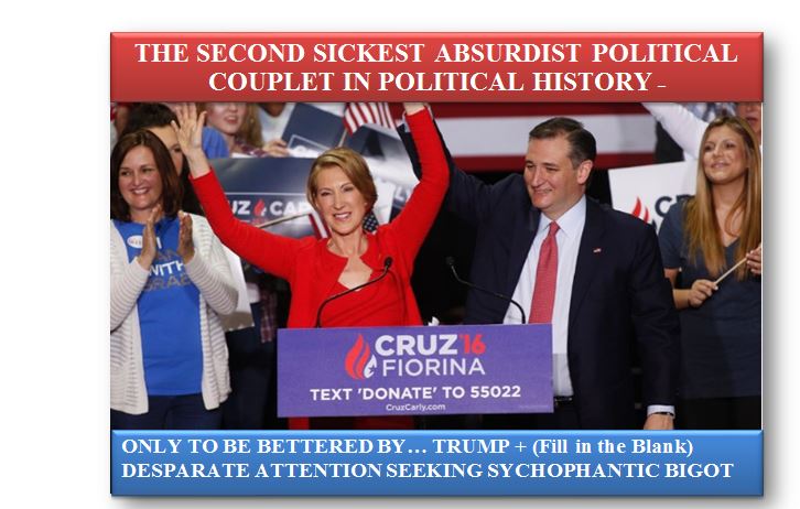 In a year where it is hard to keep track of the stupendous volume of political insanity inflicted on and by the American people, let us give the utter shamelessness in self-promotion and desperation that was the Cruz-Fiorina “ticket” its deserved due consideration as a truly historical anomaly in a year full of redefining what that word means.