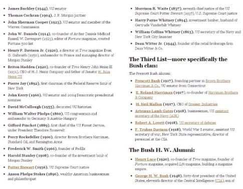 Interesting synopsis of that material available on the Bush Dynasty.