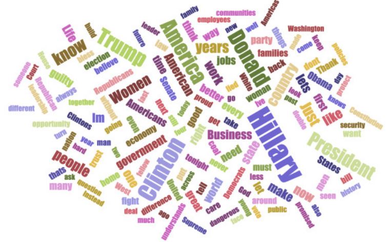 Except almost no discussion of jobs or the economy ensued, so there was not much to be distracted from. The second night ended up being a collection of jumbled speeches that were either unfocused, or focused on criticizing Hillary Clinton. In fact, the only major common thread through the first two days was a spirit of “F&*K HILLARY!” as the below word cloud shows.