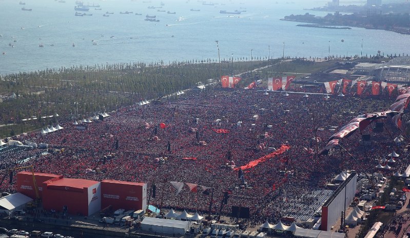 Using such rhetoric, Erdoğan for weeks exhorted his followers to engage in nightly demonstrations since the coup failed, providing free public transportation to—and free food and water at—the rallies throughout to encourage mass attendance and culminating in series of final, massive rallies in 80 cities on Monday, August 8th, including one with millions of people in Istanbul that might have been the nation’s largest rally ever. Though these rallies received robust support and encouragement from the government, the country’s main Kurdish political party—the HDP, the third-largest party in Turkey’s parliament—was excluded. Considering that many other demonstrations not favorable to Erdoğan’s agenda are banned and met with force at the hands of the police, considering that Erdoğan’s ruling AKP party is using government funds to stage repeated, continuous political rallies that exclude a major party representing a minority with which the government is in a brewing mini-civil war (or insurgency, if you like, which is claiming lives even now) in Turkey’s southeast, this must certainly be considered an improper use of power in a country that is supposedly a “democracy.”