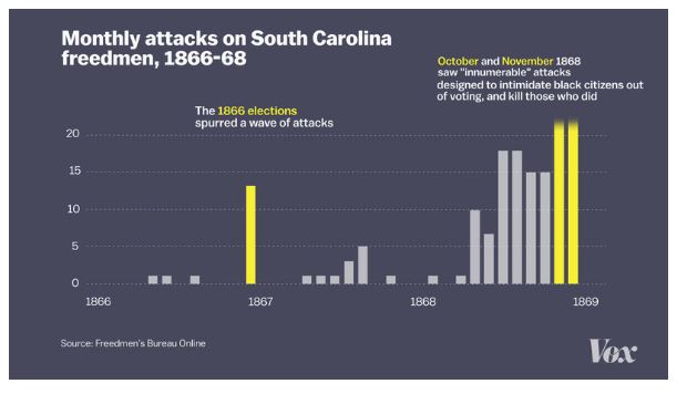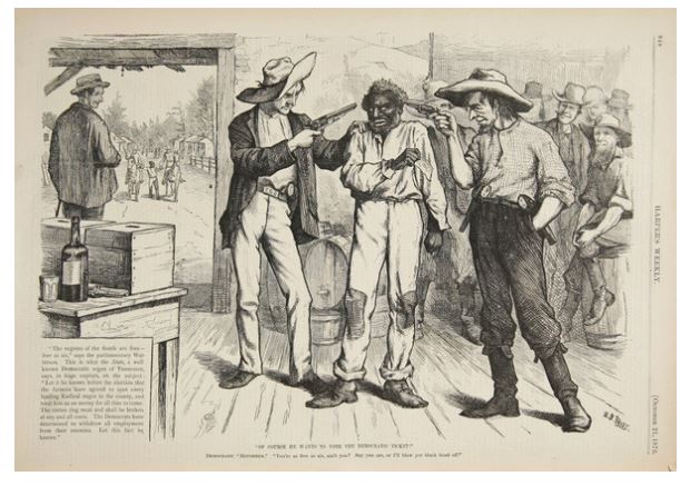 That time would roughly coincide with America’s Civil War. The war itself did not really end in 1865: during Reconstruction, the federal government with its army acting as an occupying force put into place new state governments in the Southern states that had rebelled that enforced racial political and legal equality for freed slaves, but over the course of the next decade and then some, extremist terrorist white supremacists carried out insurgencies and violently overthrew almost all these governments, putting in place racist governments highly oppressive and violent to black Americans that lasted until the 1960s; southern whites finally negotiated the withdrawal of federal troops left in the only remaining states southern white insurgents had not violently taken over after the disputed election of 1876, an election, like so many others between 1865-1876, marred in the South by widespread violence, fraud, and voter suppression.