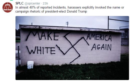 The report, by the Southern Poverty Law Center, documents 867 incidents ranging from assaults to threatening graffiti messages, based on incidents reported to the group or by news media.