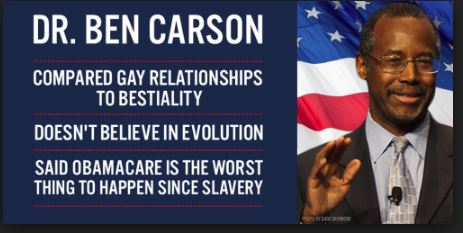 Now, imagine electing another President who talks to God, has faux Christian values, thinks the Earth is 5,000 years old, and that Jesus would favor a flat tax – a tax that would further exacerbate ever-growing income discrepancy. Also, since this imaginary friend seems to better resemble the Old Testament God, I doubt if Ben Carson will be overly concerned about women, the stoning of virgins, gays, the climate, war, or genocide. A seemingly good man turned into a clown by Stupidparty and fundamentalist, evangelical tainted religion. A seemingly good man, who believes (quite correctly, actually) that Americans are so stupid and so busy watching Dancing With the Stars that they would actually vote for Satan. And here he actually pegs it: the Republican front-runners being himself, Trump, Cruz and Huckabee -all of them agents of the devil,assuming that that true Christian doctrine accepts that the devil actually exists.