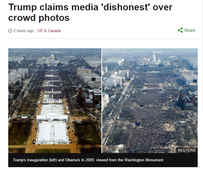 So this is what Trump said about reporters: “among the most dishonest human beings on earth”. What sparked this comment? What dishonesty caused such outrage? Luckily for us the dishonesty in question comes in the form of a photo.