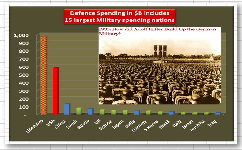 Germany was soon engaged in a gigantic program of industrial military output. The plan was that by the end of 1937, Germany would have a standing army of 300,000 men, organized into 21 divisions, which in wartime could be increased to 63 divisions. This was the defensive phase of the plan. Offensive capability would be added between 1938 and 1941