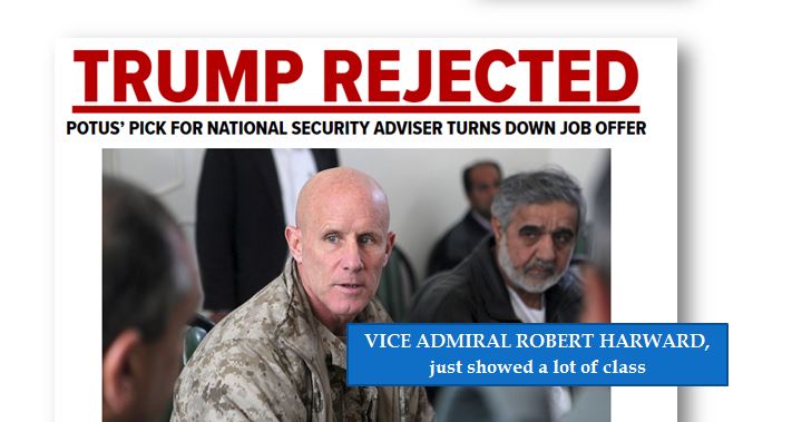 Patreaus drops out: Official says Petraeus isn’t in running for NSA job after Robert Harward turns down role. Former CIA director David Petraeus said anyone considering the national security adviser job in the Trump administration should have control over personnel and the White House would commit to a disciplined process of crafting security policy.