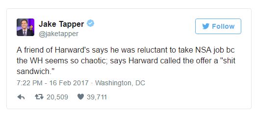 Harward took notice of Trump’s White House news conference on Thursday, a source told The Huffington Post. The president lashed out at the media, fiercely defended his administration’s performance during its chaotic first month and said Flynn had done nothing wrong in discussions with Russian officials before the inauguration.