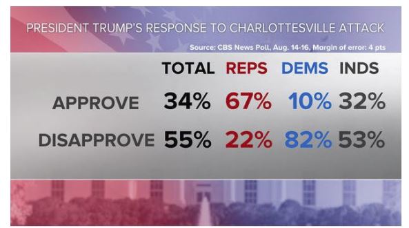 67% of SP disciples approved of Trumps handling of Charlottesville Kristalnacht – Aug 2017