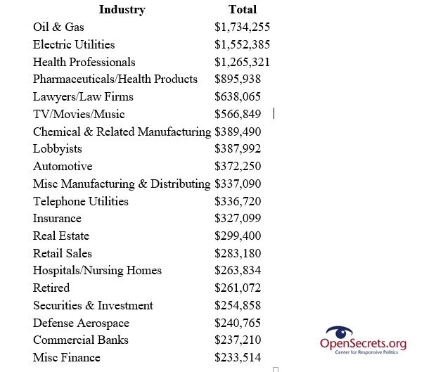 Follow the Money Fred Upton received from Oil and Gas – by 2010 he is persuaded.